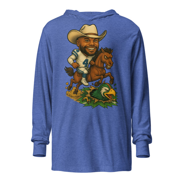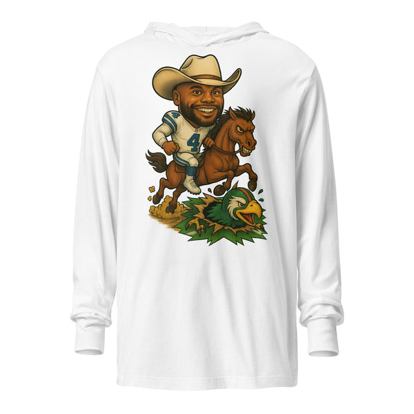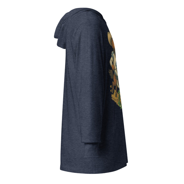 With its long sleeves and comfortable hood, this tee is perfect for layering, allowing you to create stylish outfits all year round. Plus, its lightweight construction allows for unrestricted movement, ensuring that you feel at ease no matter the occasion.
